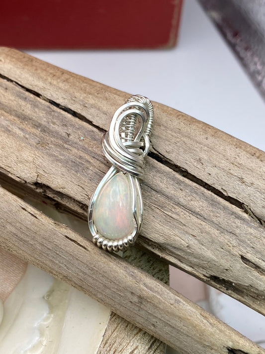 White Plume Agate W/ Red Garnet in Sterling Silver