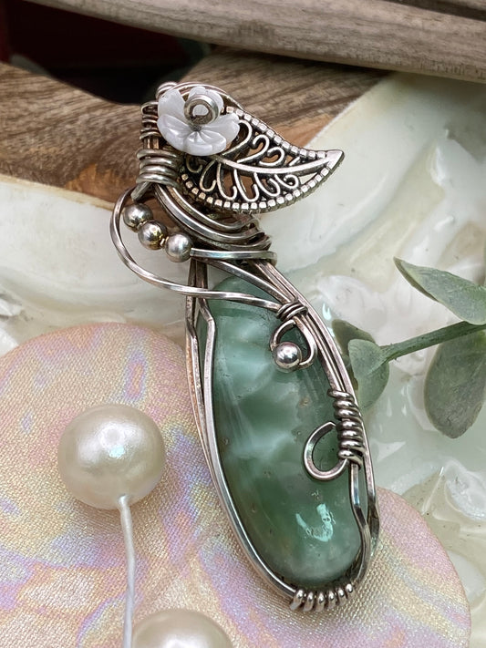 Hemimorphite/ flower in Sterling Silver