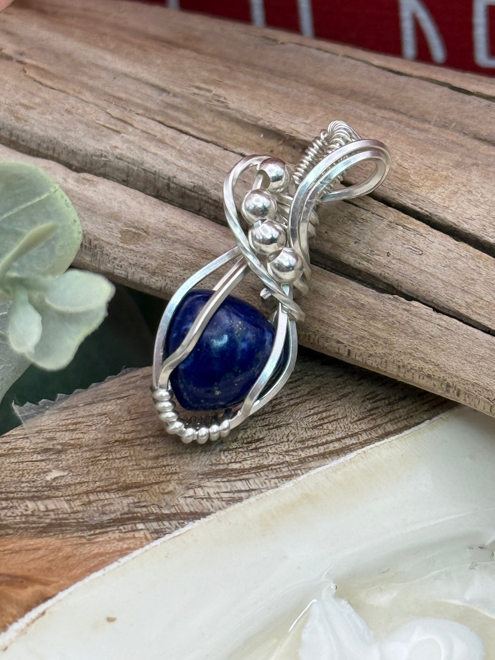 The perfect accessory for your jewelry collection. This is a mini Lapis Lazuli wrapped in pure Sterling Silver, with sterling silver bead accents. This will look great for a night out on the town, a day at work or even when wearing pj’s on the couch! You do you!