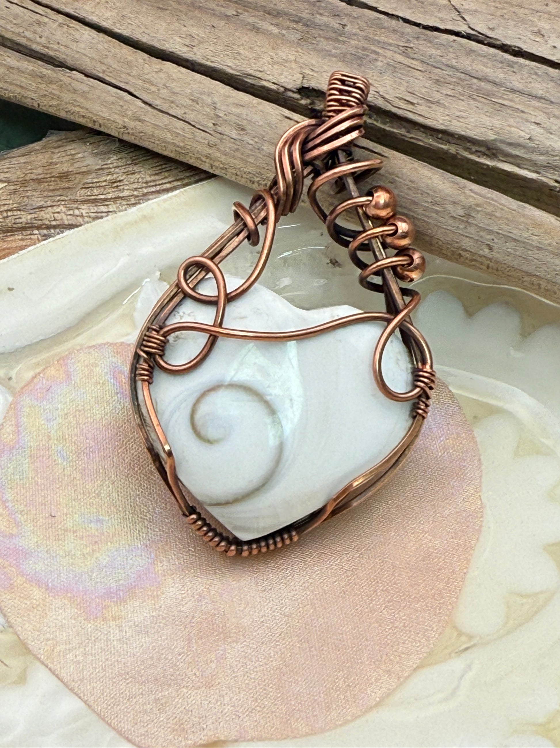 Known for its protective and grounding properties, this Shiva-Eye stone is a beauty all on its own. This has been wrapped in pure copper and oxidized.