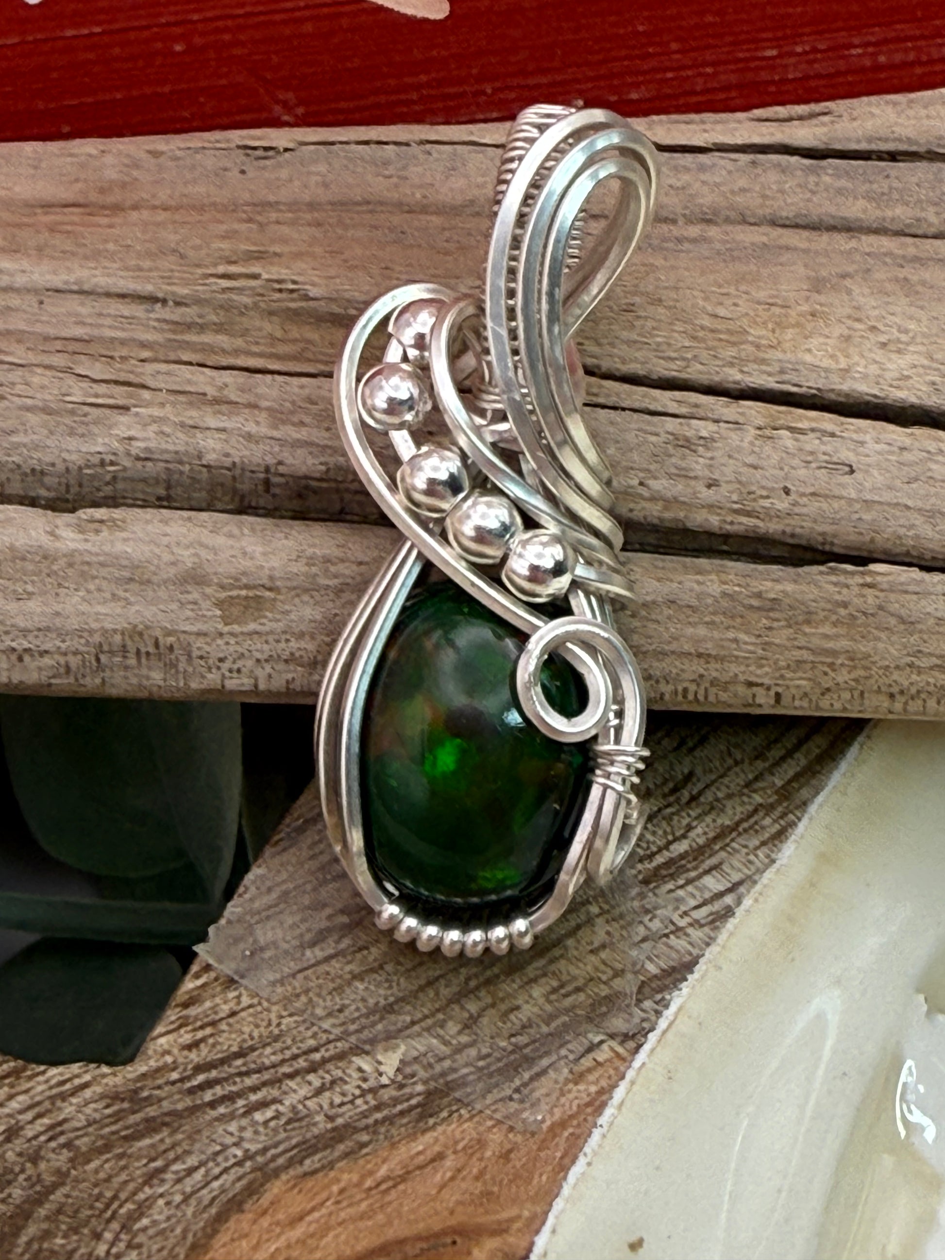 This is honestly a stunning opal the cameras don’t do it justice. It dances in the light, and the sterling silver really helps it shine.